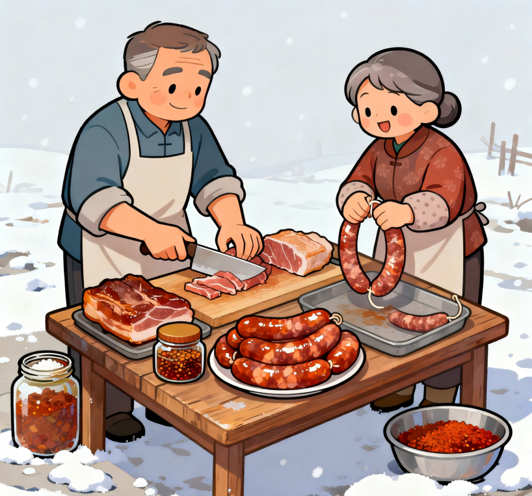小雪節(jié)氣,意味著天氣會(huì)越來越冷。民間有“冬臘風(fēng)腌,蓄以御冬”的習(xí)俗,不少人家開始動(dòng)手做香腸、臘肉,待到春節(jié)時(shí)享用美食。而在南方某些地方,還有農(nóng)歷十月吃糍粑的習(xí)俗。